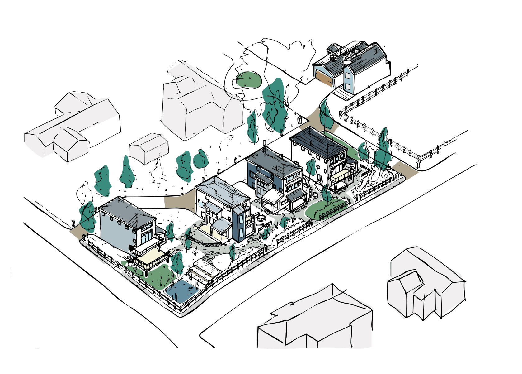The Port Houses represent a rare infill opportunity not limited by the typical design constraints of smaller lots. This community delivers a truly walkable lifestyle without sacrificing privacy, generous yard space, home office integration, or resident parking limitations. The homes are designed with room for amenities like bike storage, outdoor saunas, and adaptable ADUs.